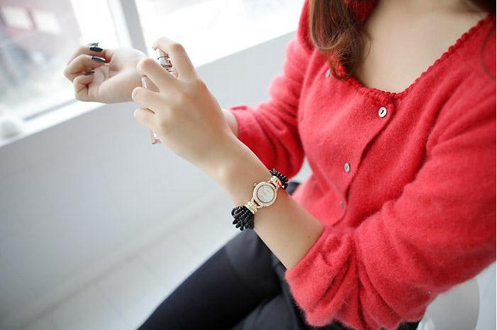 Movement types: crewmen quartz with material: leather dial shape: circular display type: the launch time: 2011 watch kinds: female table color classification: white, black book, book looks: new watch button: buckle the needle table: ordinary BiaoGuan: ordinary[product materials] : alloy. Beads. diamond [product size] : dial is 2.3 cm in diameter, total length is about 18.5 centimeters