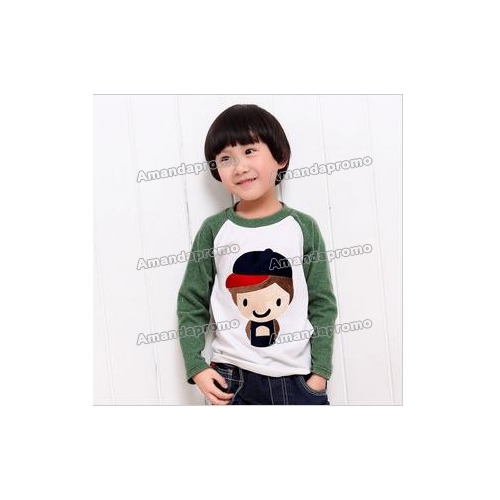 Color classification: ash green spell white children's clothing collar style: round brought suggest height (size) : 100 110 120 130 men and women of: male item no: F10341 fabric/texture proxy: blended children's clothing style: leisure children's clothing design: the cartoon children's wear t-shirts type: the long-sleeved T-shirt