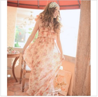 Floral Long Chiffon Gisele Straps Sleeveless Fashion Cocktail Dress |