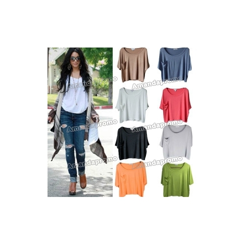 Large Pockets Loose Comfortable Short Style Short Sleeve T-shirt |