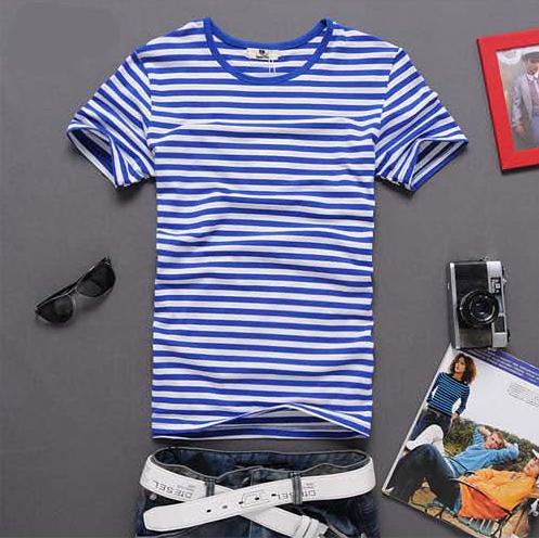 Men Fashion Summer Special Collar Strip Short Sleeve T Shirt |