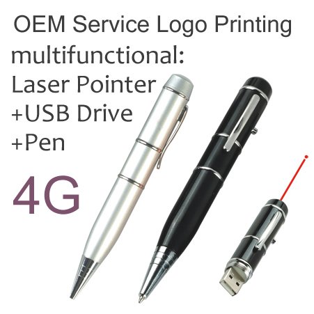 Pen Shape USB Flash Drive with Laser Pointer 4G Disk Memory OEM Logo Printing |