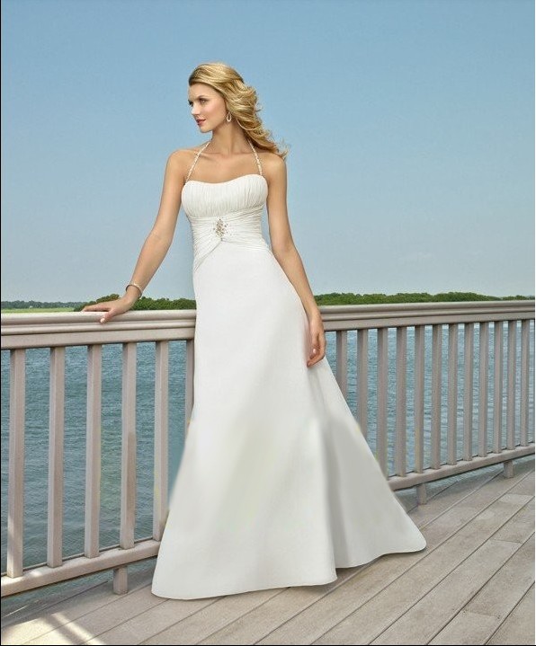 Puff Strapless Floor Length Beach Beaded Bride Dresses |