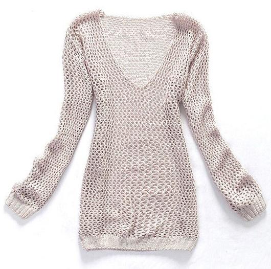 Purity Long Sleeves Hollow Out Sexy V-neck Fashion Sweater |