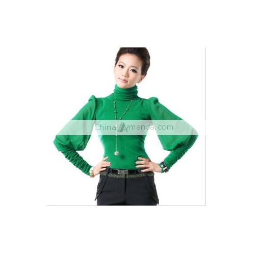 Women's Long Sleeve High Neck Pure Color T-shirt |