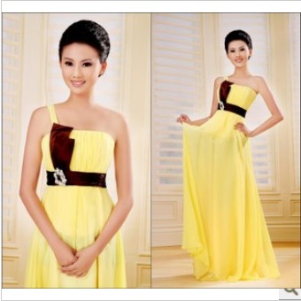 Yellow Sweetheart Sash Organza A-line Bridesmaid Dresses |